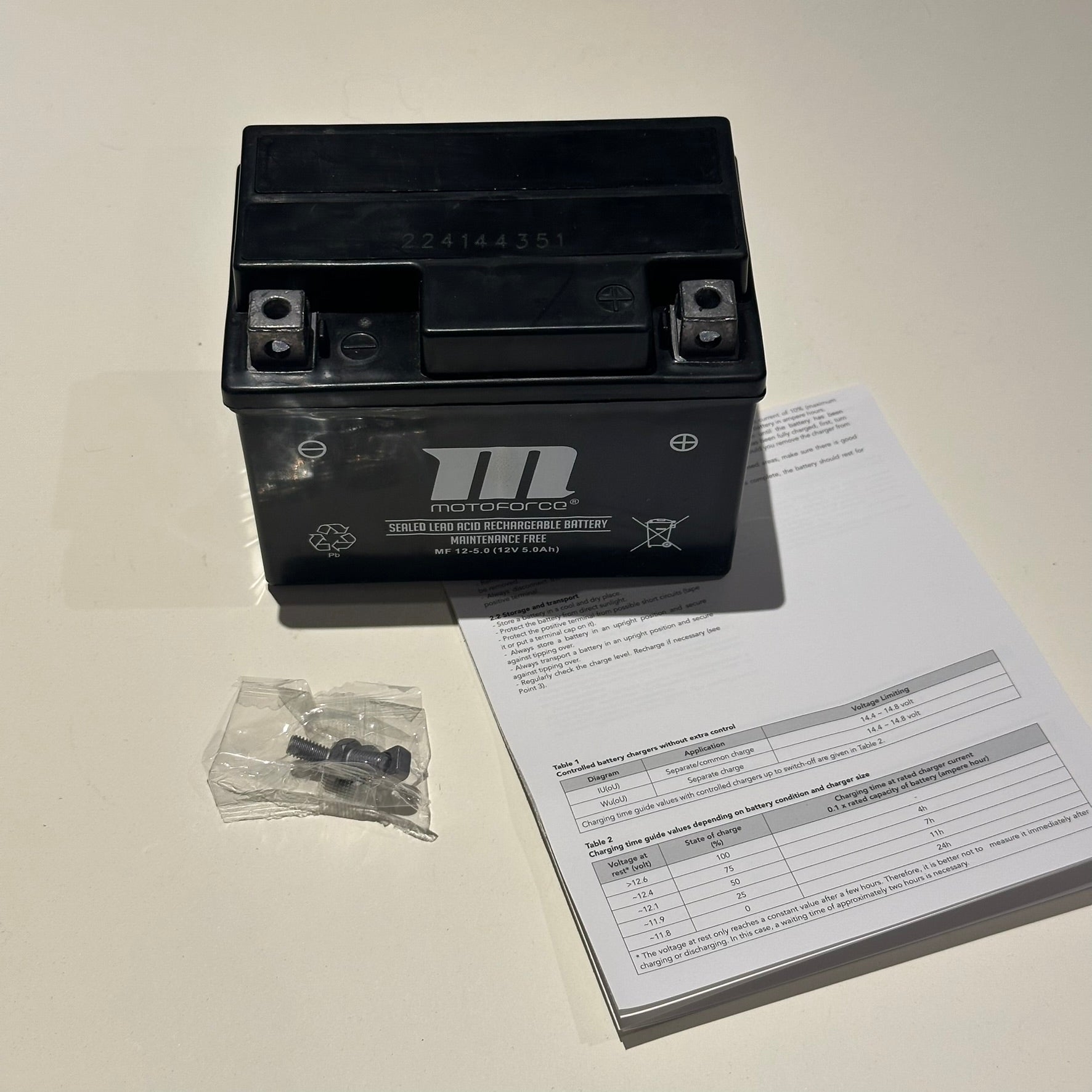 Bra och prisvärd batteri på 12v med 5 ampere. Plug & play redo att användas direkt ut ur box. Levereras helt underhållsfritt, förseglat och laddat. Batteriet har 1Ah mer än de flesta standard batterier och ger inga nackdelar utan gör att du får mer effekt när du ska startar. Dubbelkolla så måtten passar för dig 112x68x89mm.